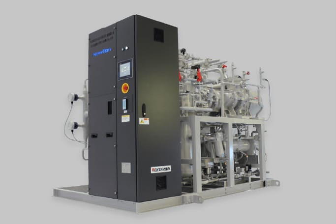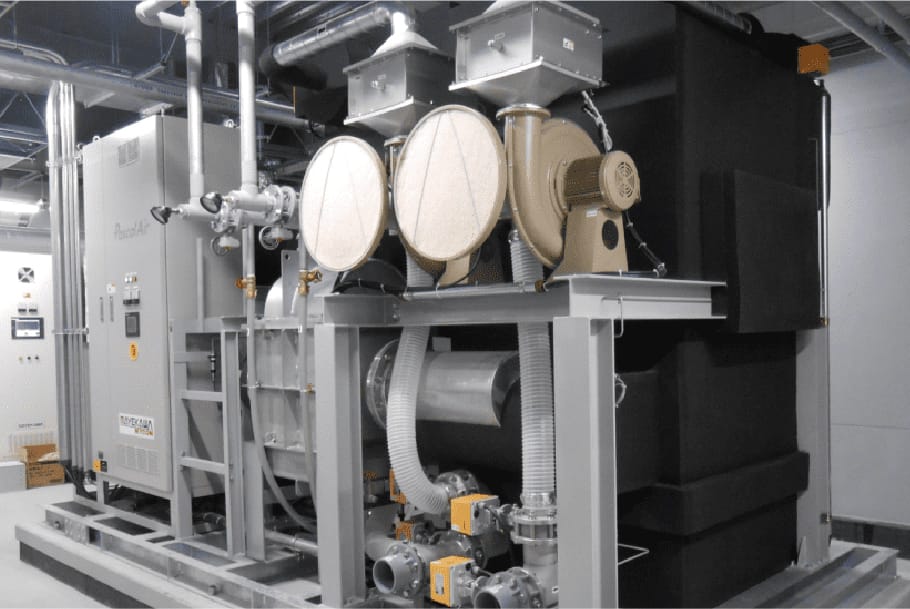 空気冷凍サイクルを用いて超低温領域(-100~-50℃)を作り出す冷凍機。従来の蒸気圧縮式フロン冷凍システムより、最大50%の省エネルギー、CO₂排出量削減が可能です。